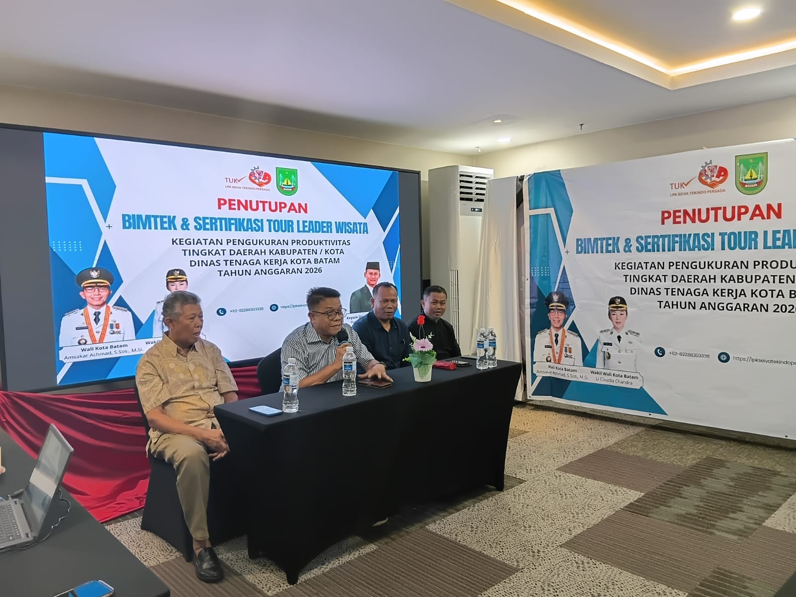 BatamNow.com – Bimbingan Teknis (Bimtek) dan Uji Kompetensi Tour Leader yang diselenggarakan Dinas Tenaga Kerja (Disnaker) Pemerintah Kota Batam resmi ditutup pada Sabtu (04/04/2026). Kegiatan yang berlangsung sejak 30 Maret 2026 ini digelar di MaxOne Hotel Pelita.