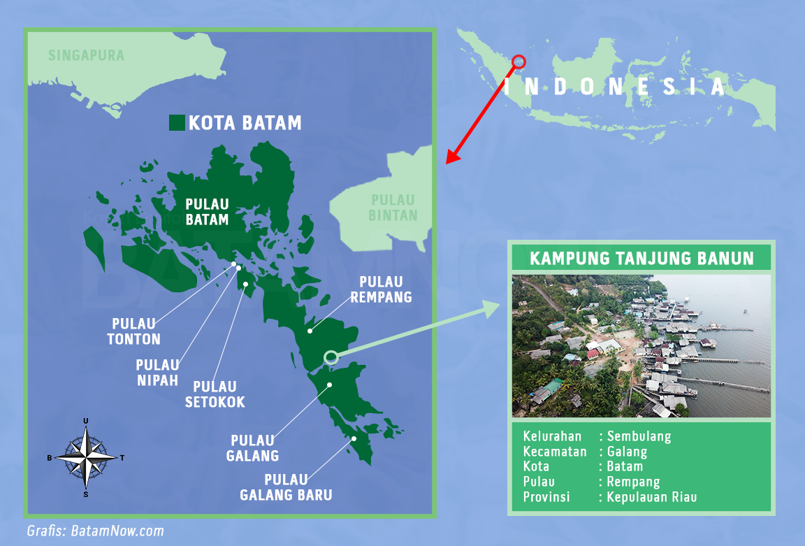 Ilustrasi peta lokasi Kampung Tanjung Banun di Kota Batam. (F: BatamNow)