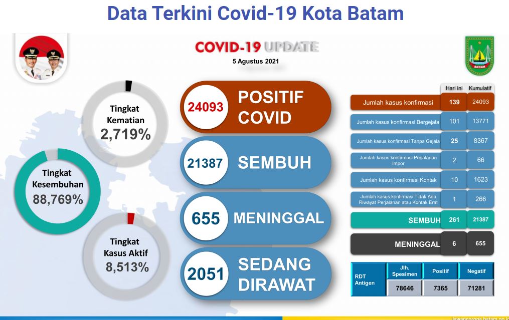 Covid-19 Kota Batam 5 Agustus 2021: Kasus Baru Menurun, Kesembuhan Naik - BatamNow.com Verifikasi