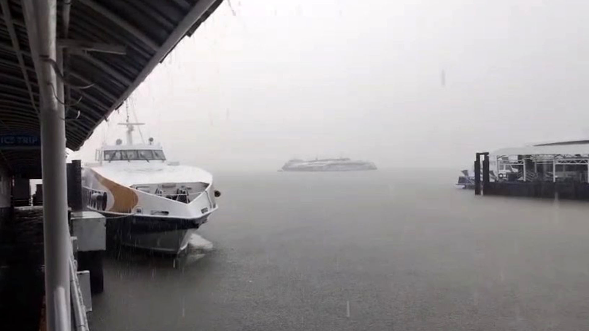 Beberapa kapal tujuan Singapura dan Malaysia terpaksa menunda keberangkatan akibat kondisi cuaca ekstrem tersebut.
