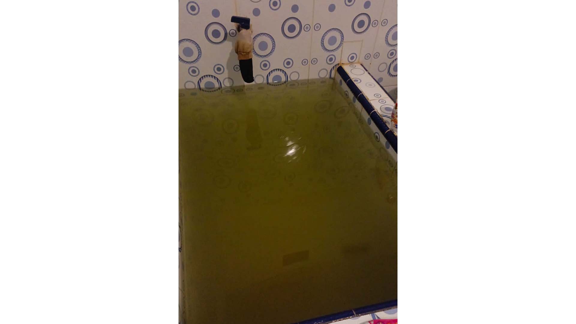 Warga yang merupakan konsumen SPAM harus menerima air keruh dan berwarna kecoklatan yang keluar dari pipa SPAM.
