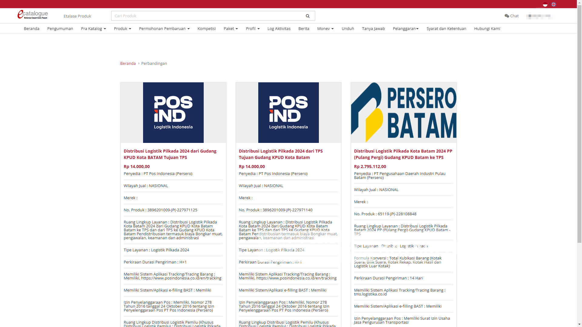 Informasinya, ada dua perusahaan ikut tender tersebut, yakni PT Pengusahaan Daerah Industri Pulau Batam (Persero) atau Persero Batam dan PT Pos Indonesia (Persero). Keduanya mendaftarkan produk jasa mereka di laman E-katalog.