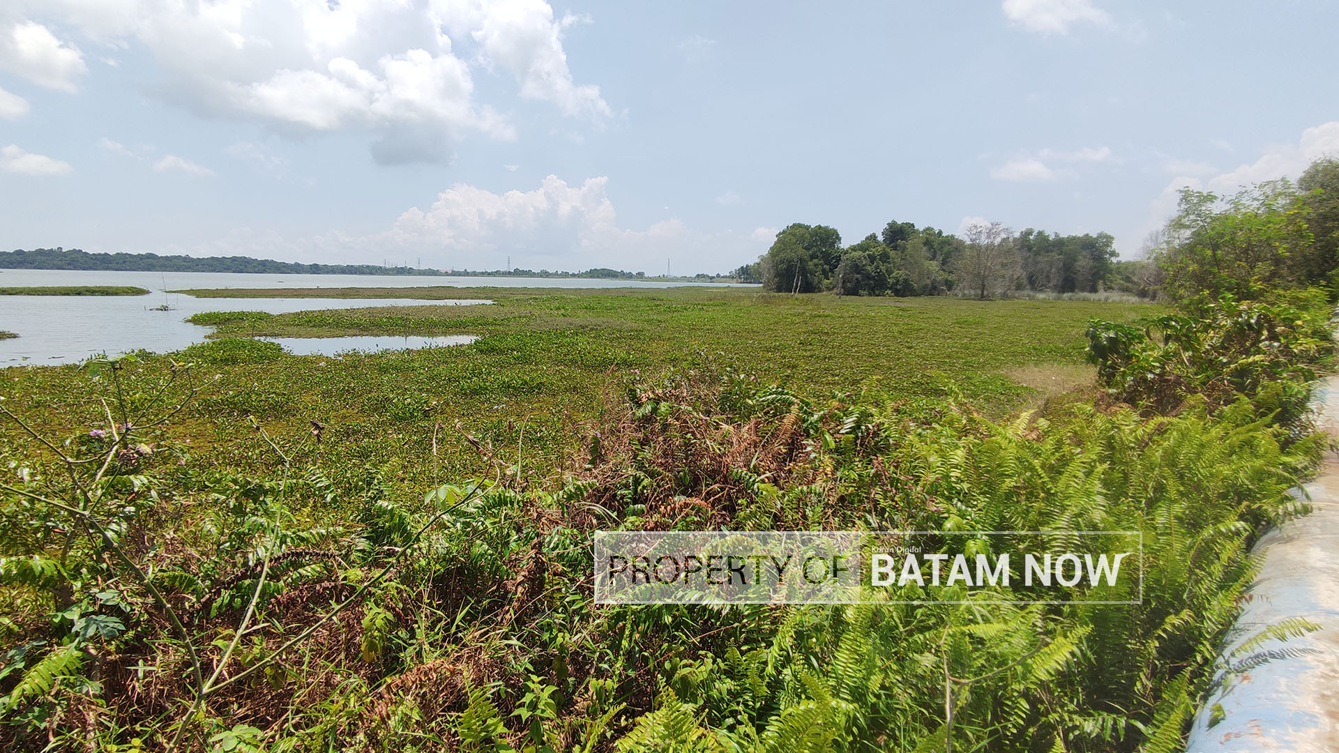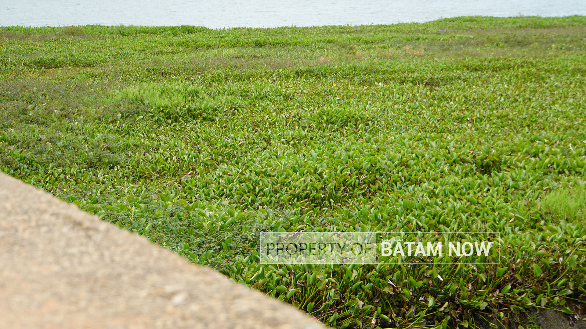 Eceng gondok menutupi waduk Duriangkang di seberang Jalan Raya Kampung Bagan. (F: BatamNow)