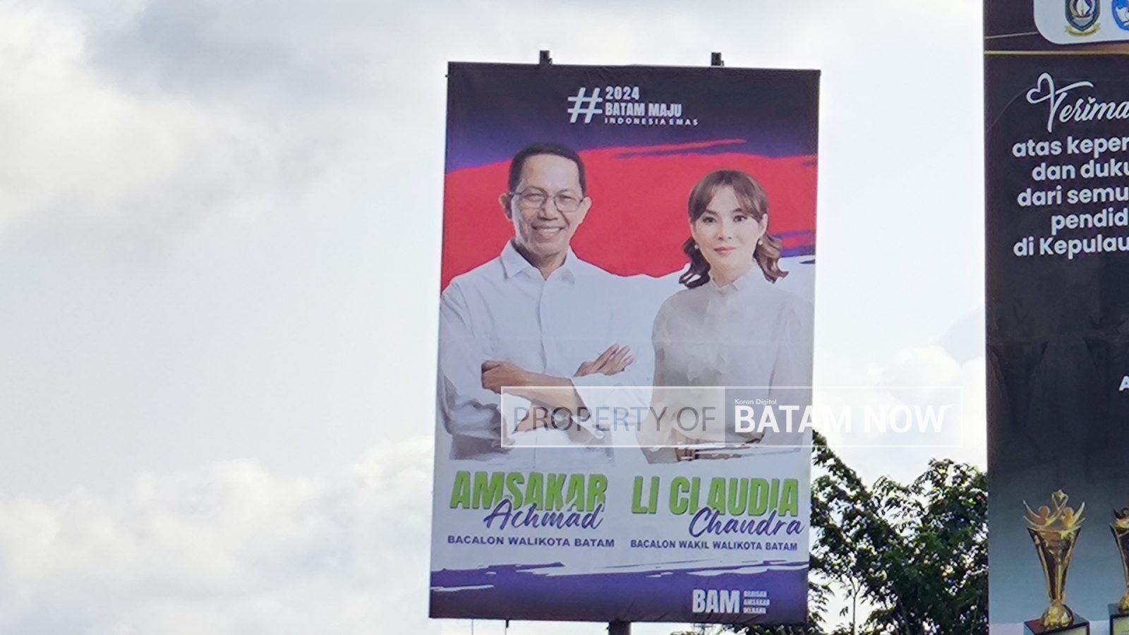 Banner dukungan terhadap pasangan Amsakar Achmad – Li Claudia Chandra di Pilkada Batam 2024. (F: BatamNow)