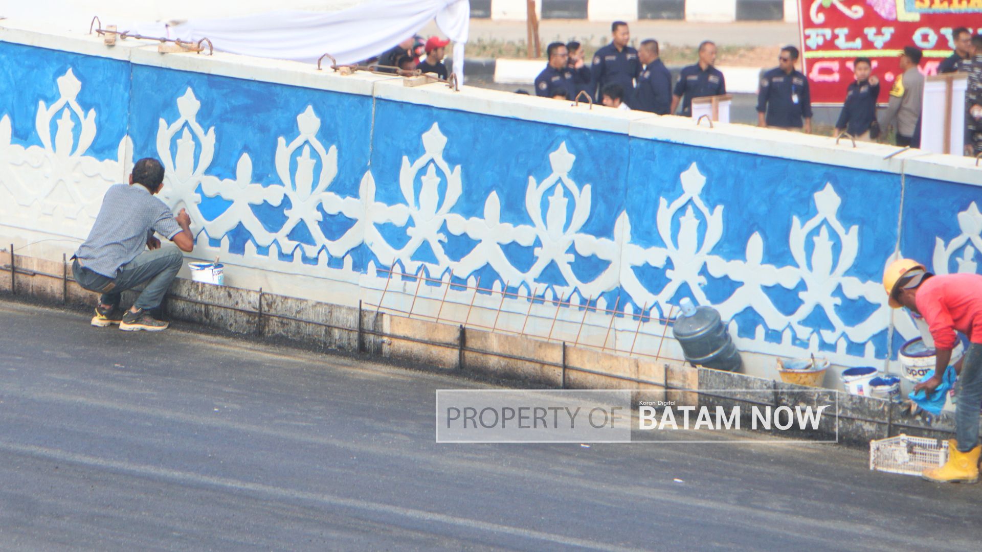 Sebagian badan jalan pada Flyover Laksamana Ladi, terlihat belum selesai dilapisi aspal seluruh permukaannya, di hari peresmiannya, Selasa (31/12/2024) pagi. (F: BatamNow)