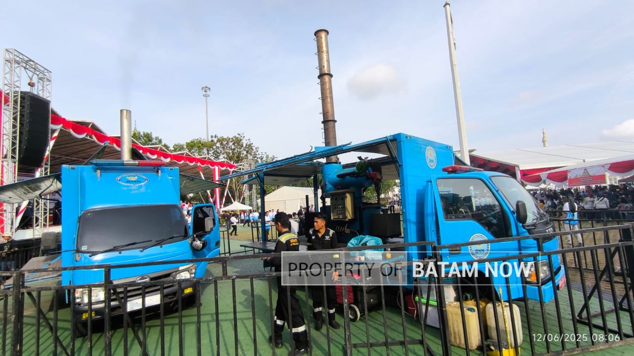 Dua unit alat incinerator yang akan digunakan memusnahkan barang bukti sabu, diparkir di Alun-alun Engku Putri, Kota Batam, Kamis (12/06/2025). (F: BatamNow)