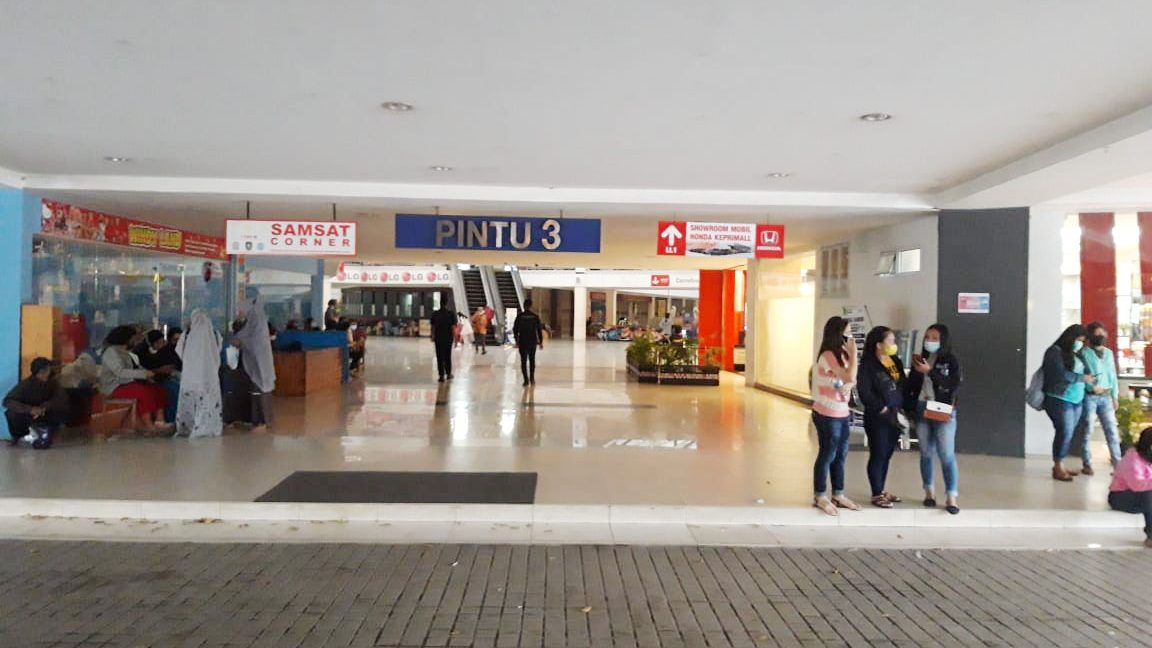 Beberapa pengunjung yang datang tadi mulai beranjak dari salah satu gate mal itu setelah mendapat info penundaan vaksinasi.