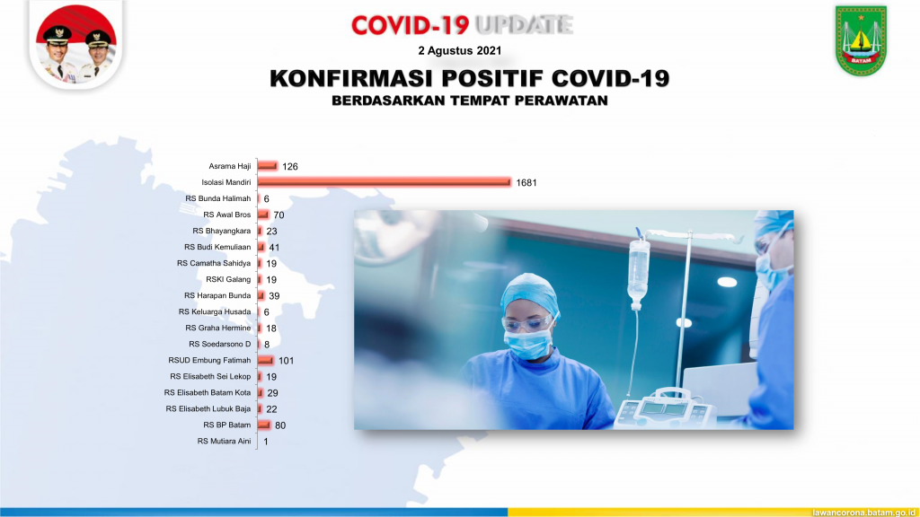 Per hari Senin (02/08), Kota Batam mencatatkan total 23.617 pasien positif Covid-19, 20.677 telah sembuh dan 632 meninggal dunia.