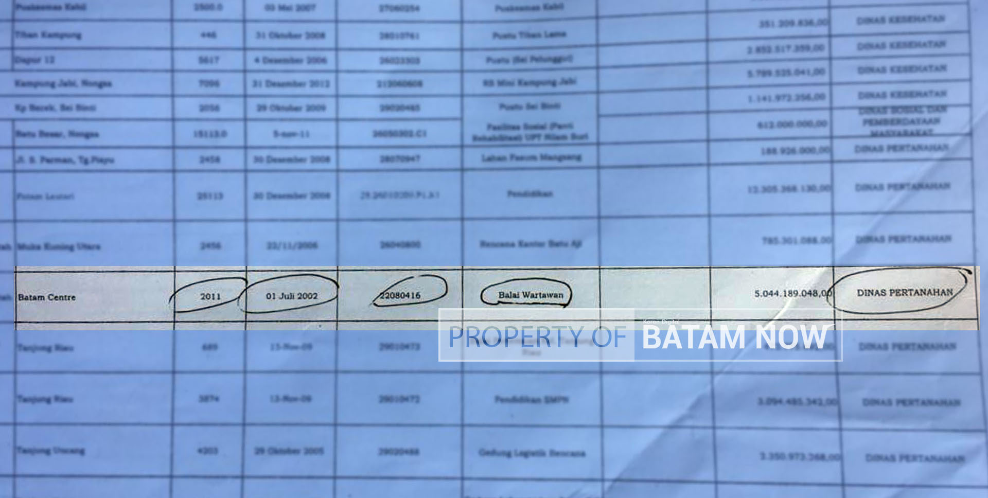 Sebagaimana dalam LHP BPK TA 2020, dari daftar aset Pemko Batam terdapat tanah dan bangunan seluas 2011 untuk penggunaan Balai Wartawan.