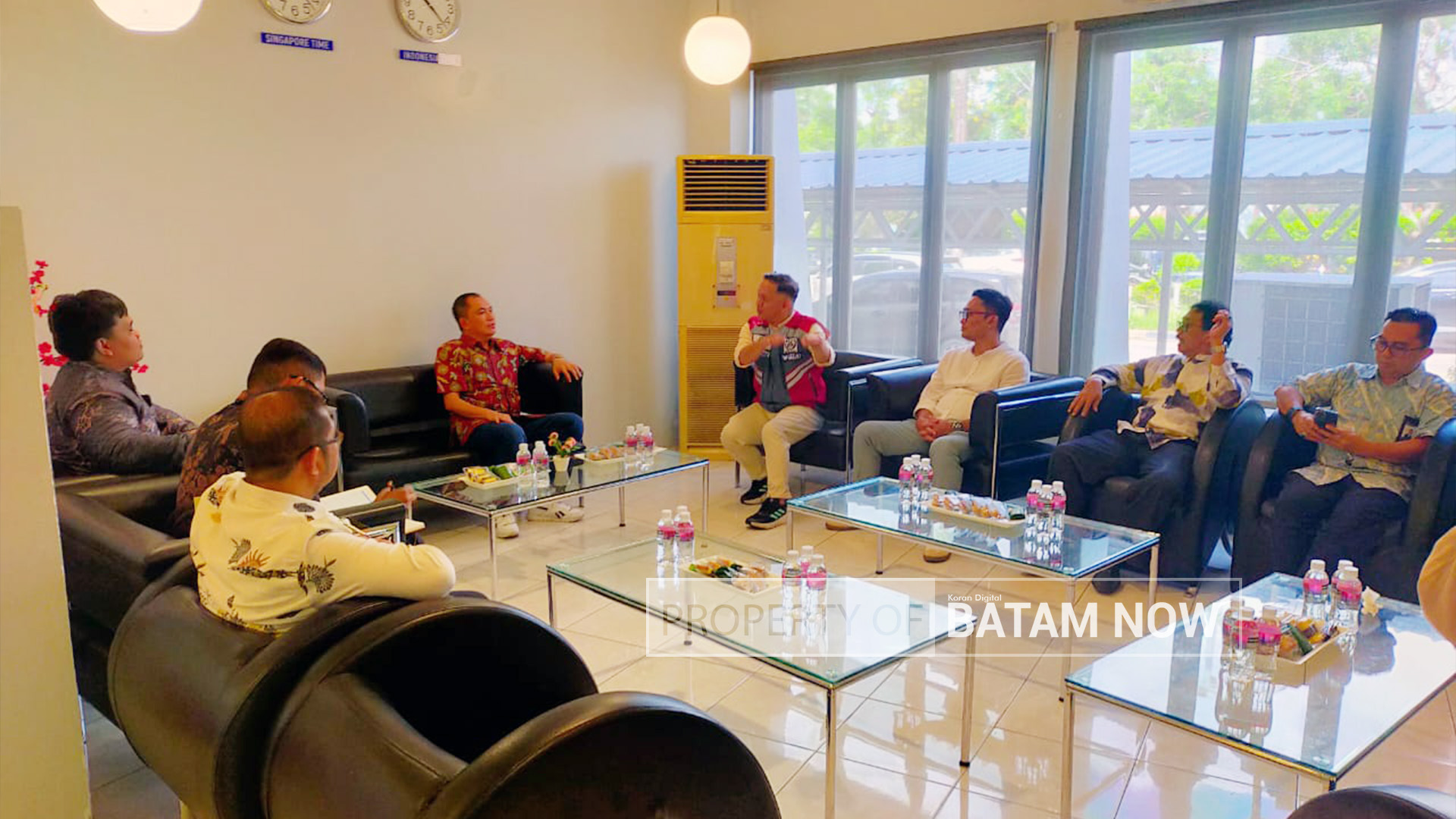 Lalu Fans beserta rombongan dibawa masuk ke Executive Lounge di lantai dasar gedung pelabuhan. Di sana, ketiga pihak menggelar rapat terbatas termasuk untuk staf BP Batam, sekitar 1 jam lamanya.