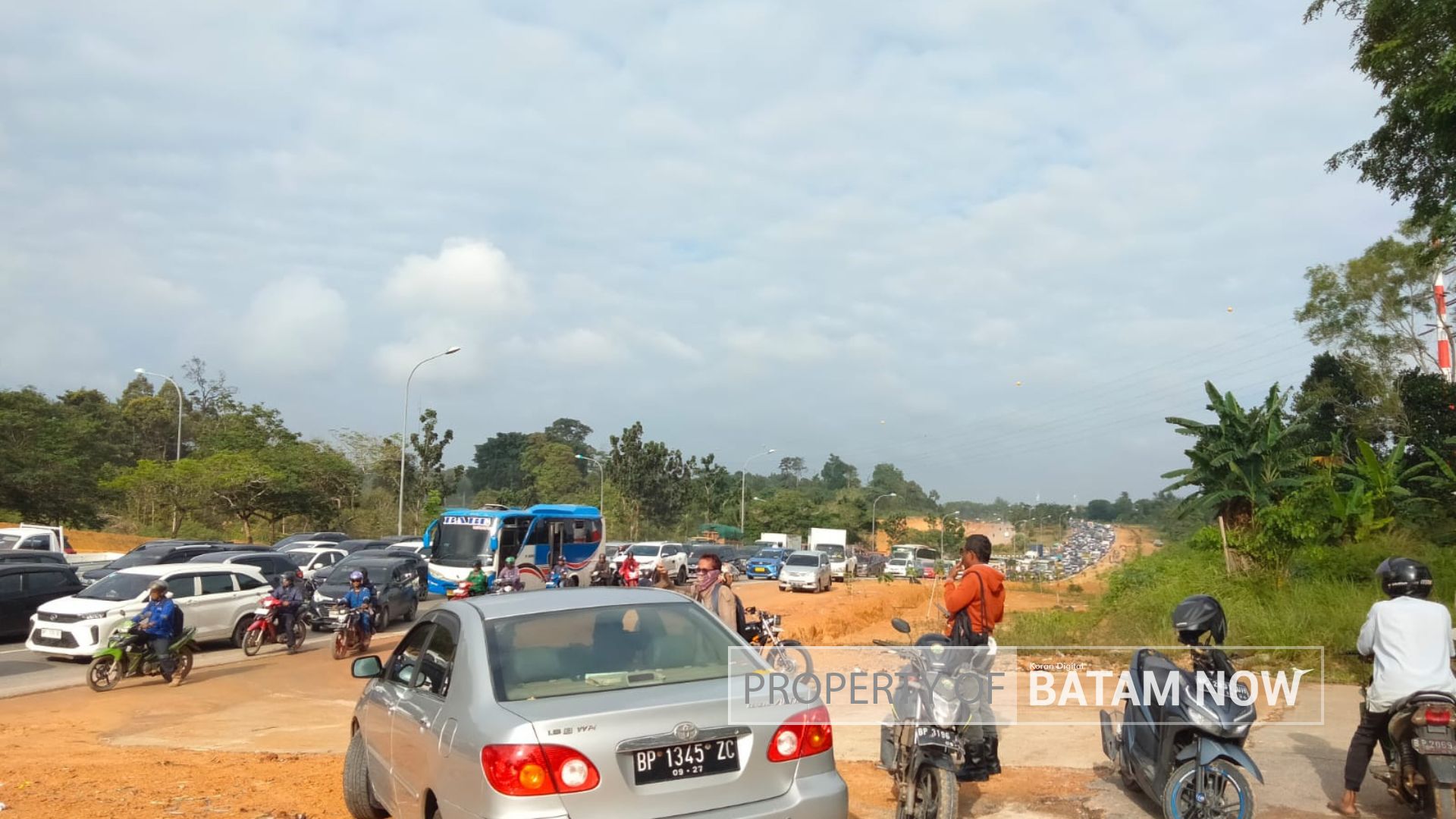 Menurut seorang personel Satlantas Polresta Barelang yang bertugas di sana, pihaknya sudah berada di tempat sejak pukul 06.30 untuk membantu memperlancar arus lalu lintas yang padat merayap.