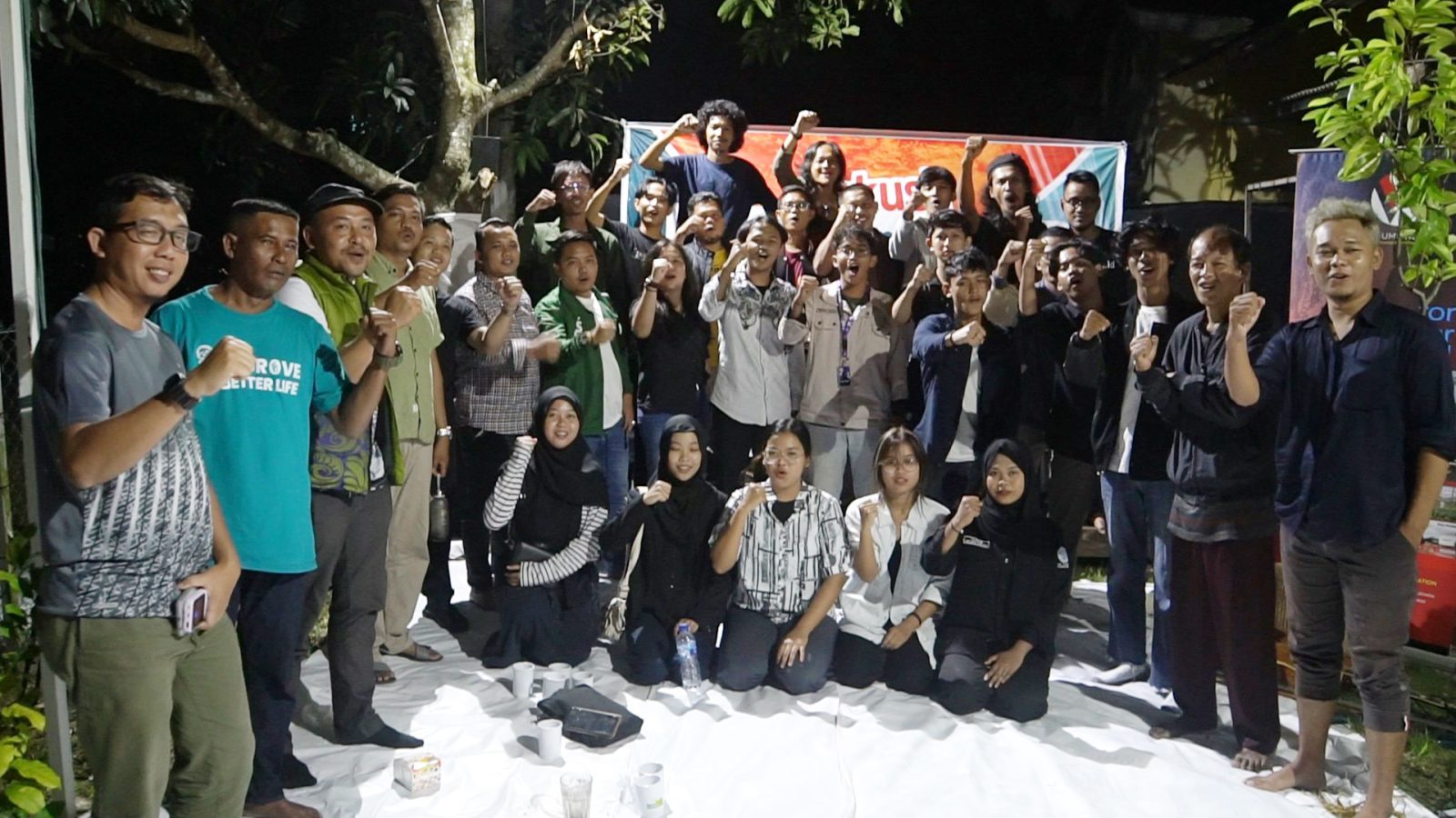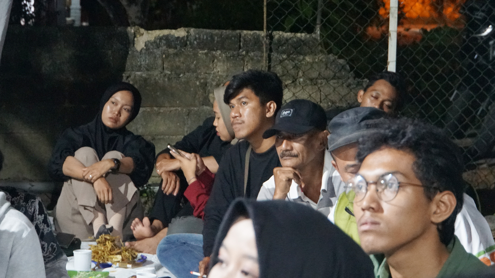 Peserta menunjukkan antusiasme mengikuti kegiatan Nonton Bareng dan Diskusi Catatan Kelam Kerusakan Lingkungan di Batam, dilalsanakan di halaman Sekretariat AJI Batam, Sabtu (24/02/2024) malam. (F: Dok. AJI Batam)