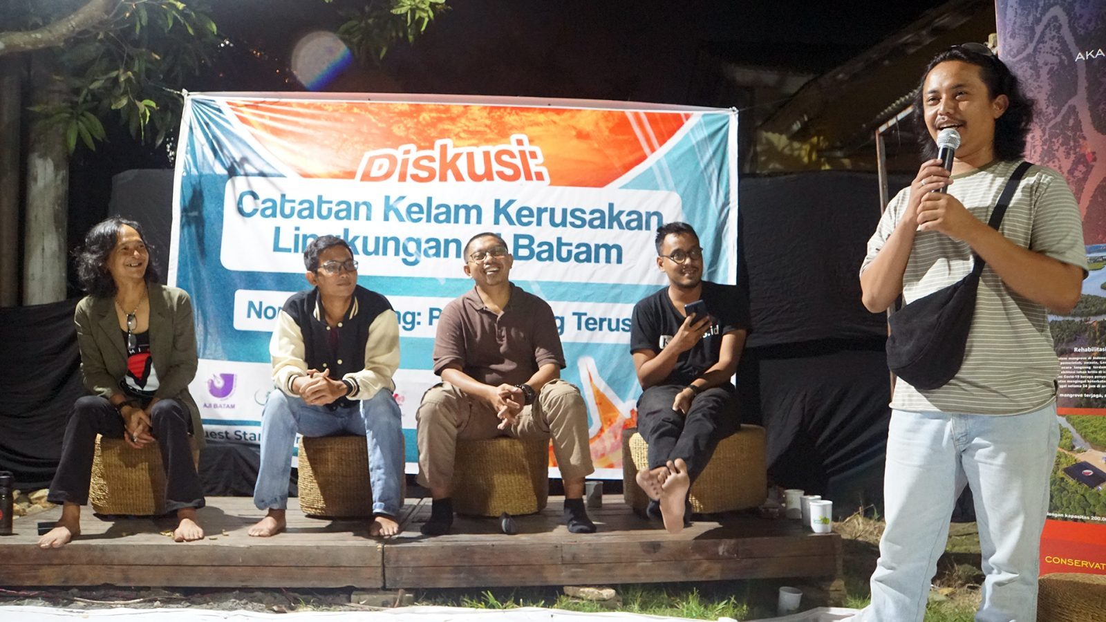 Diskusi dengan tema, “Catatan Kelam Kerusakan Lingkungan di Batam” berlangsung sederhana di halaman Sekretariat AJI Batam. Peserta yang hadir beragam, mulai dari mahasiswa, aktivis, nelayan dan perwakilan pemerintahan. Di lokasi, mereka lesehan sambil menikmati rebusan yang disiapkan oleh panitia.