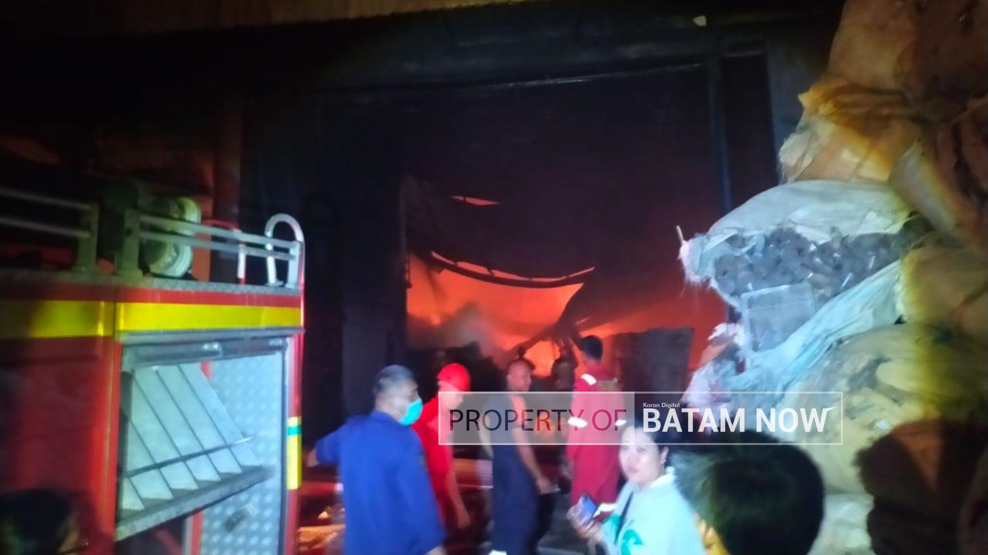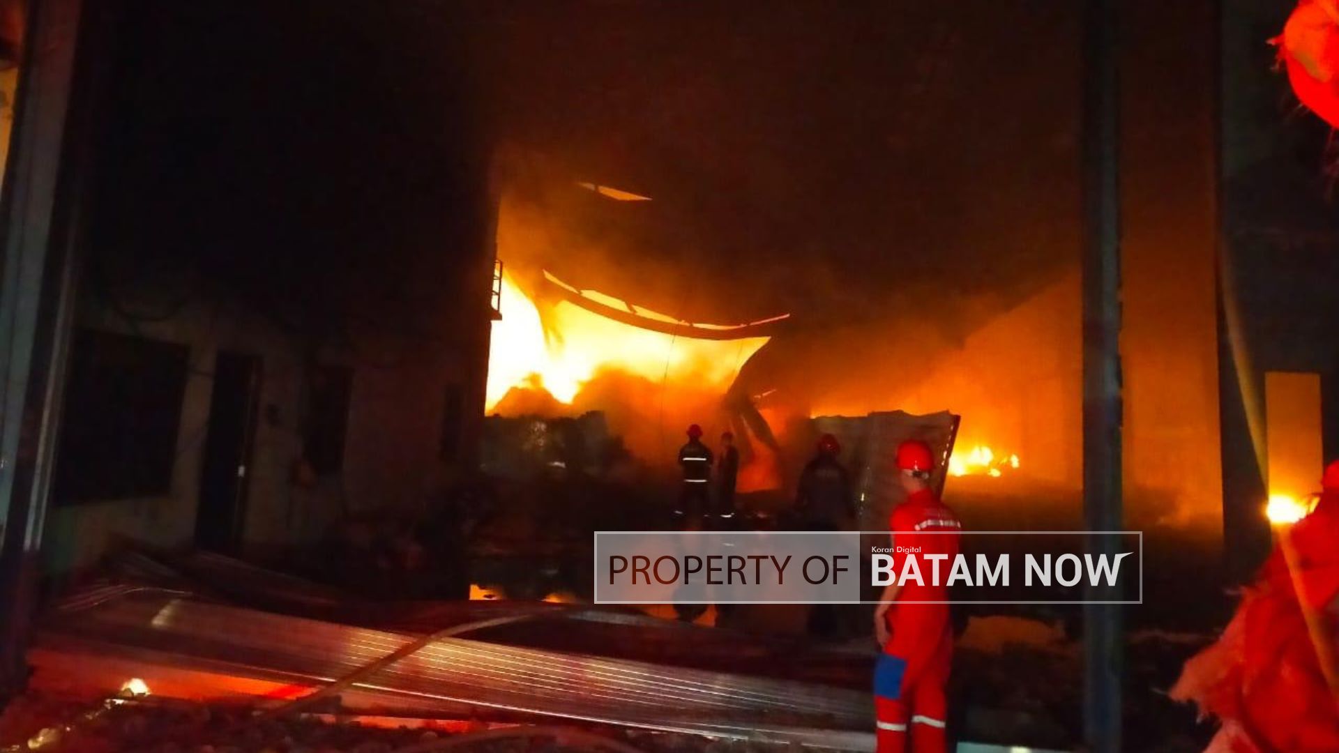 Wartawan BatamNow.dom berada di lapangan sekitar pukul 23.20, menyaksikan kobaran api dengan asap tebal yang membubung menghanguskan seluruh bangunan dan tumpukan bahan bahan plastik di dalam pabrik itu.