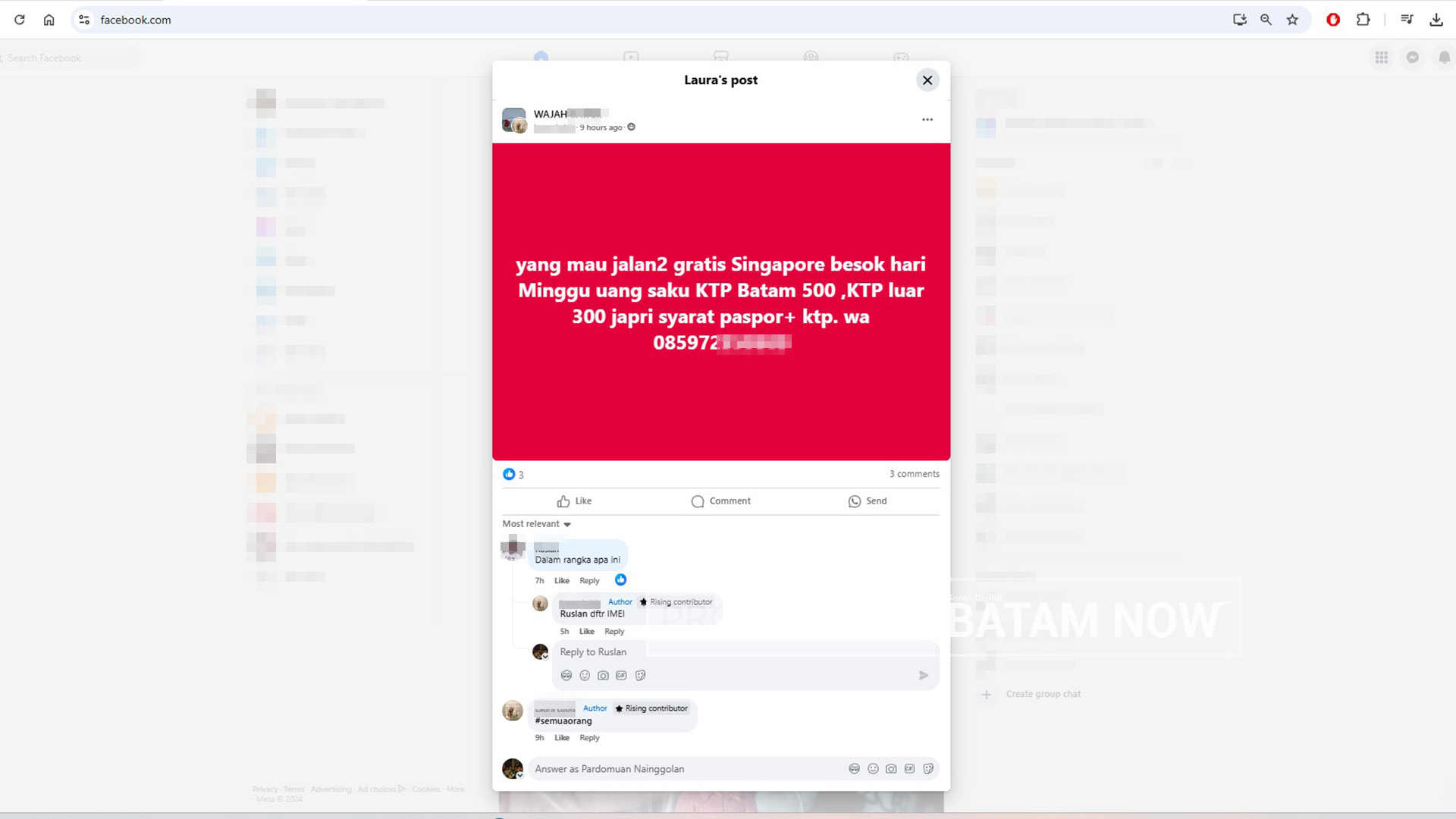 Kemudian bahwa para “korban” dari modus ini didominasi emak-emak yang kerap berselancar di media sosial Facebook serta warga Batam yang sedang mencari pemasukan tambahan.