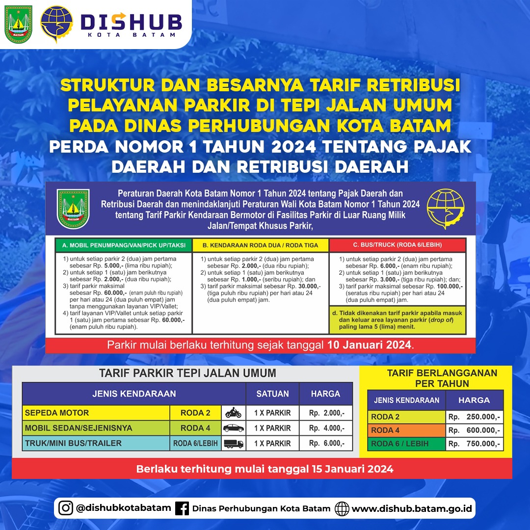 BatamNow.com – Pemko Batam mengklaim tengah menggesa berbagai bentuk sosialisasi kenaikan tarif pajak parkir dan retribusi ke masyarakat yang diberlakukan 10 dan 15 Januari 2024: