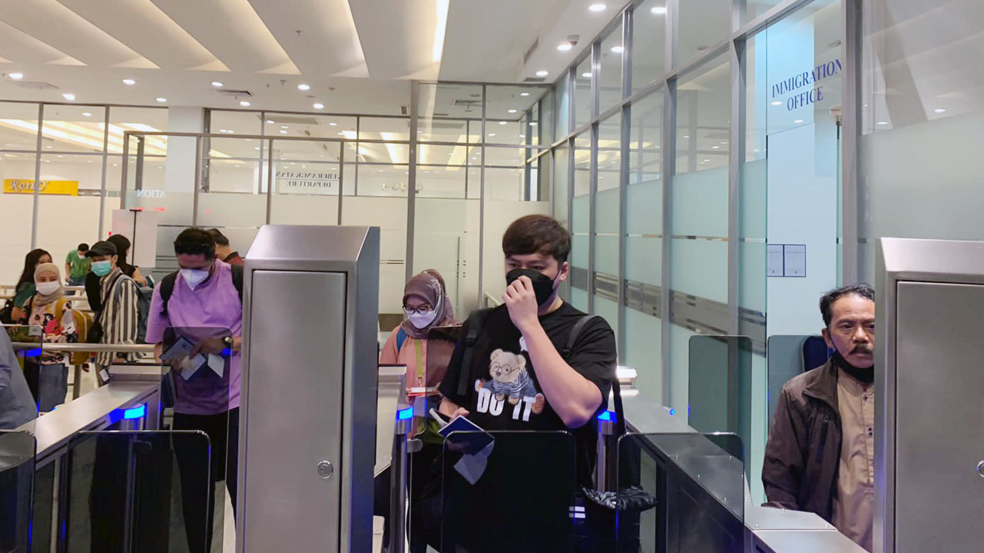 pelancong sedang mengantre di fasilitas autogate Pelabuhan Internasional Harbour Bay, Batam. (F: Dok. Imigrasi)