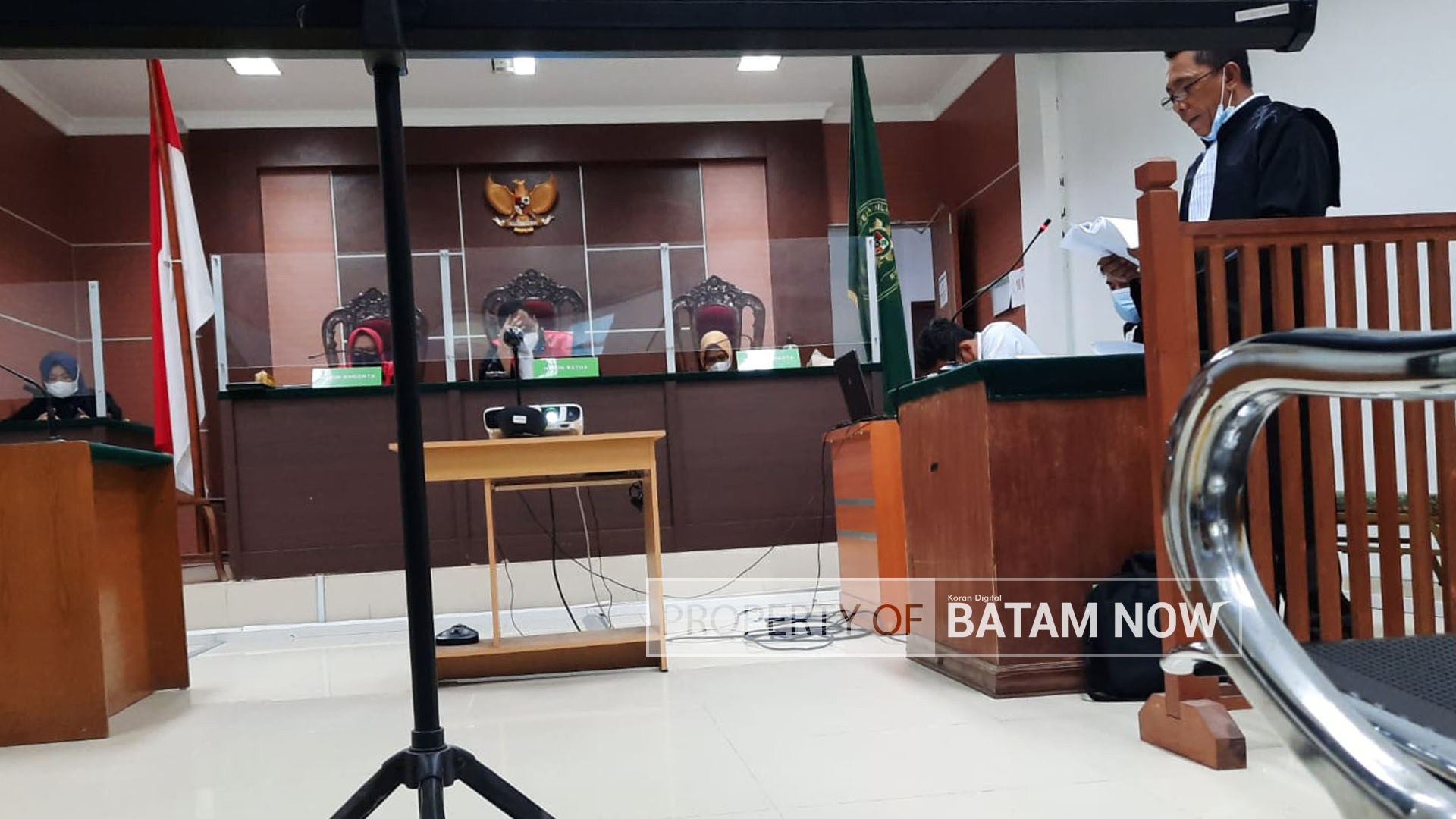 Setelah sidang perkara pertama, majelis hakim PN Batam langsung melanjutkan persidangan pembacaan pledoi untuk perkara nomor 42/Pid.B/LH/2022/PN Btm tentang limbah bahan berbahaya dan beracun (B3).