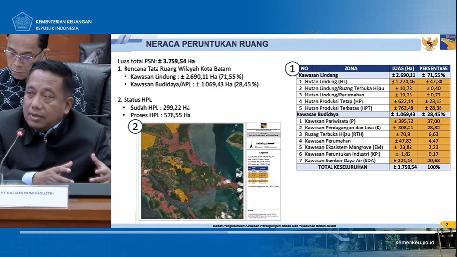 Ma’ruf menyebutkan bahwa BP Batam sebenarnya telah memberikan rekomendasi awal. Namun hingga kini Kementerian ATR/BPN belum menerbitkan RKKPR dengan alasan masih menunggu penerbitan Hak Pengelolaan Lahan (HPL) kepada BP Batam.