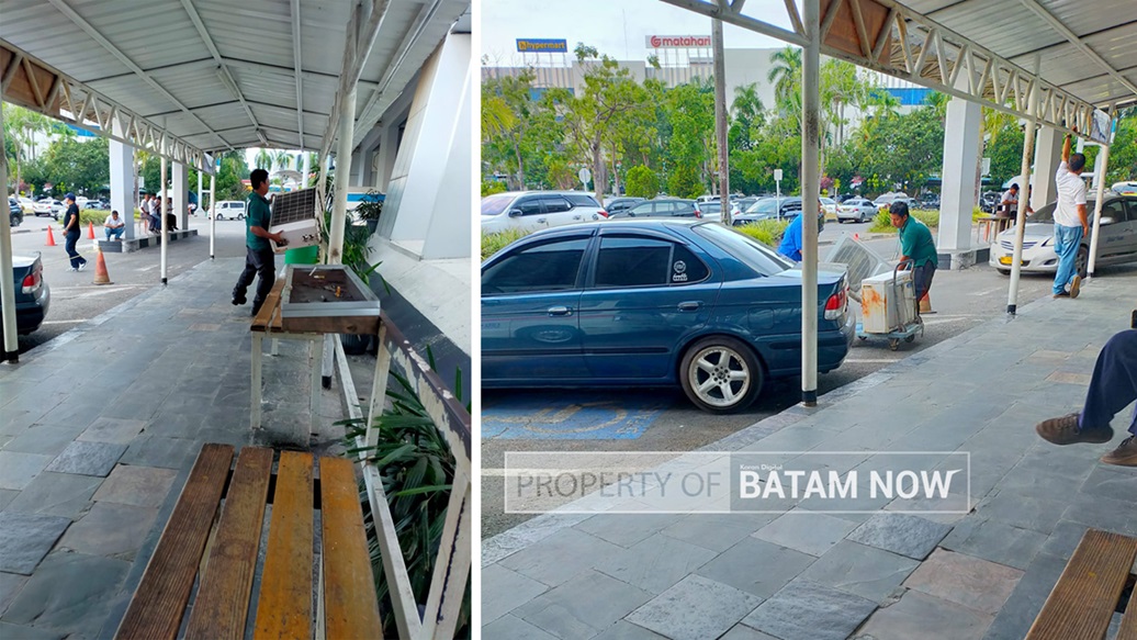 Dari pantauan BatamNow.com di pelabuhan feri Internasional Batam Center, tepatnya di samping pintu dua gedung pelabuhan, terlihat beberapa karyawan PT ST menurunkan sejumlah unit Outdoor AC dari atas gedung pelabuhan.