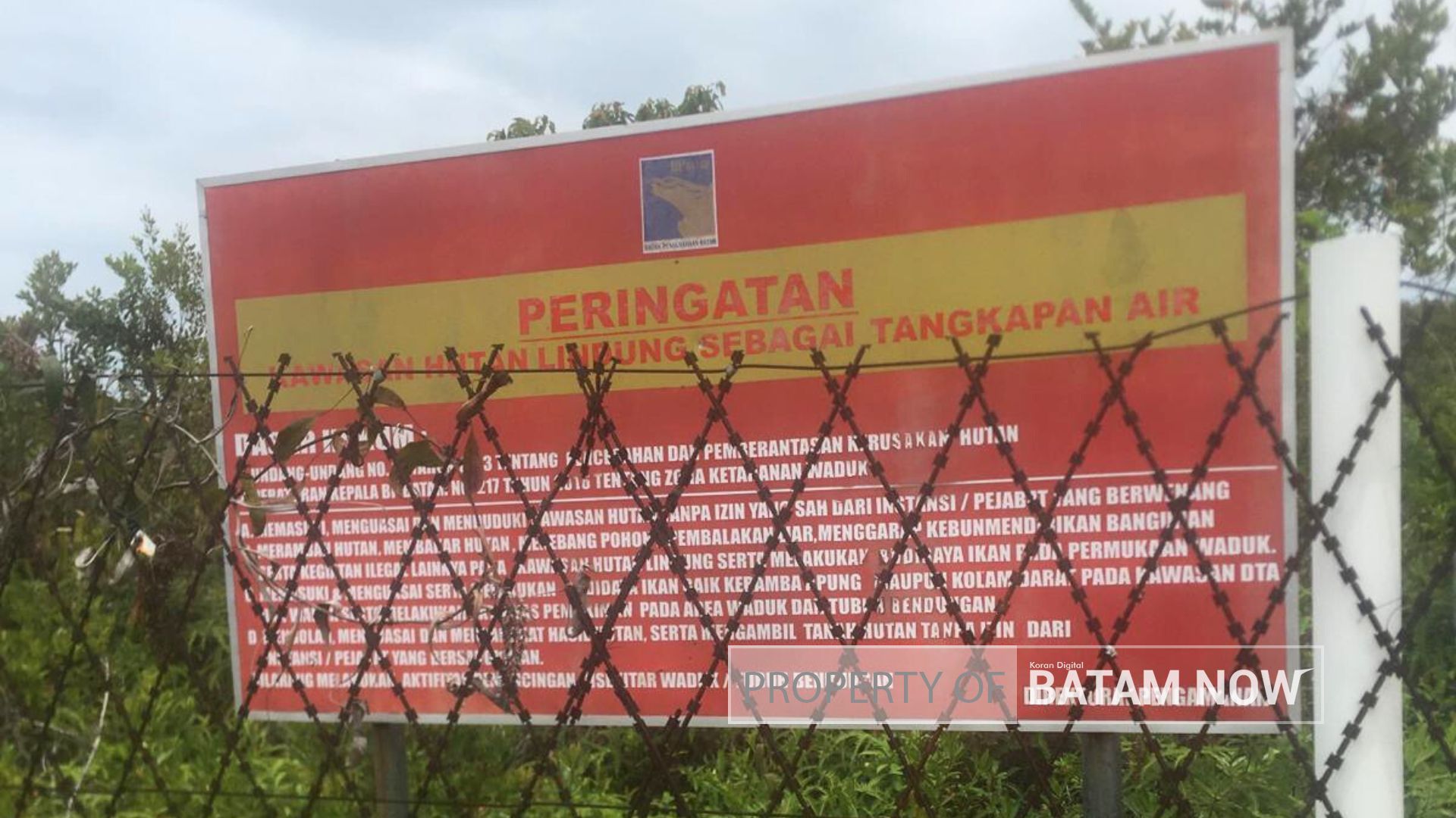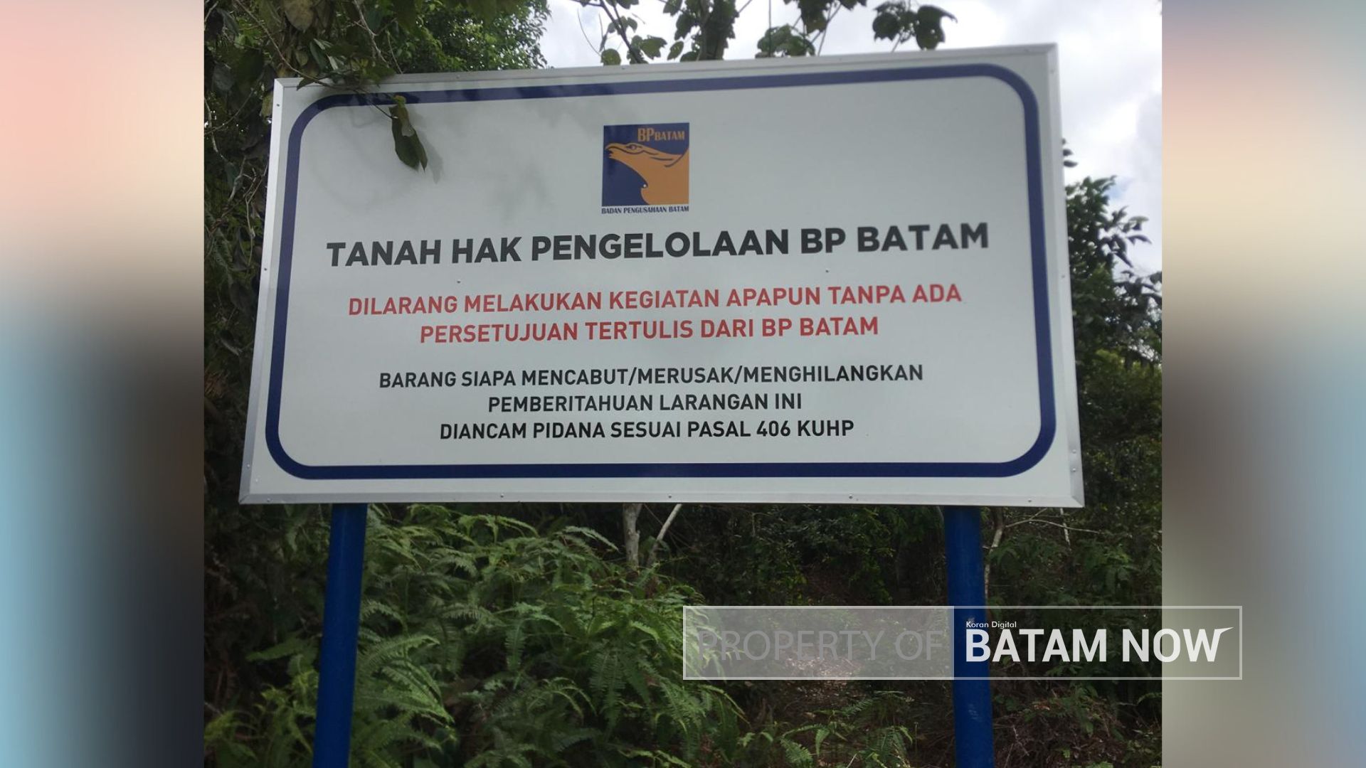 Papan peringatan BP Batam di tanah Pulau Rempang, Kota Batam. (F: BatamNow)