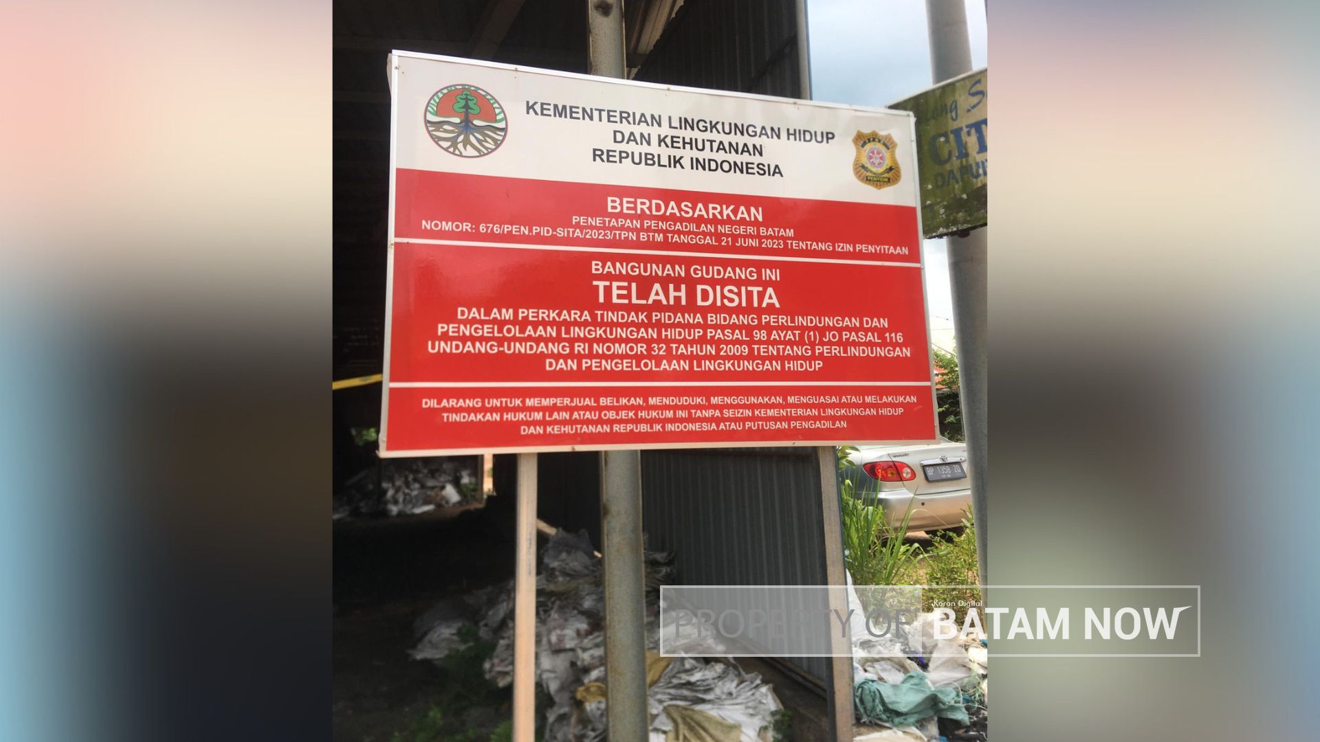 Di pelabuhan (tradisional) arang Dapur 6, ada lagi papan pemberitahuan dari Kementerian Lingkungan Hidup dan Kehutanan RI, atas penyitaaan gudang arang milik warga yang disebut hasil putusan PN Batam.