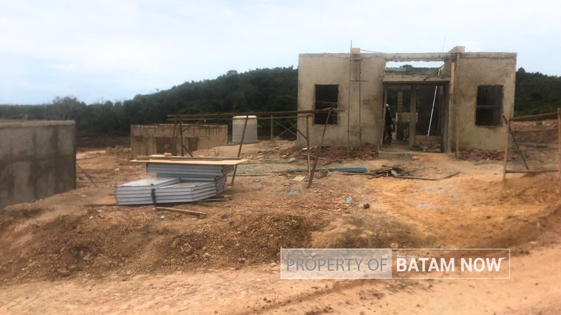 Kondisi lokasi pembangunan 4 rumah contoh untuk warga Rempang yang setuju direlokasi/digeser dari kampungnya. (F: BatamNow)