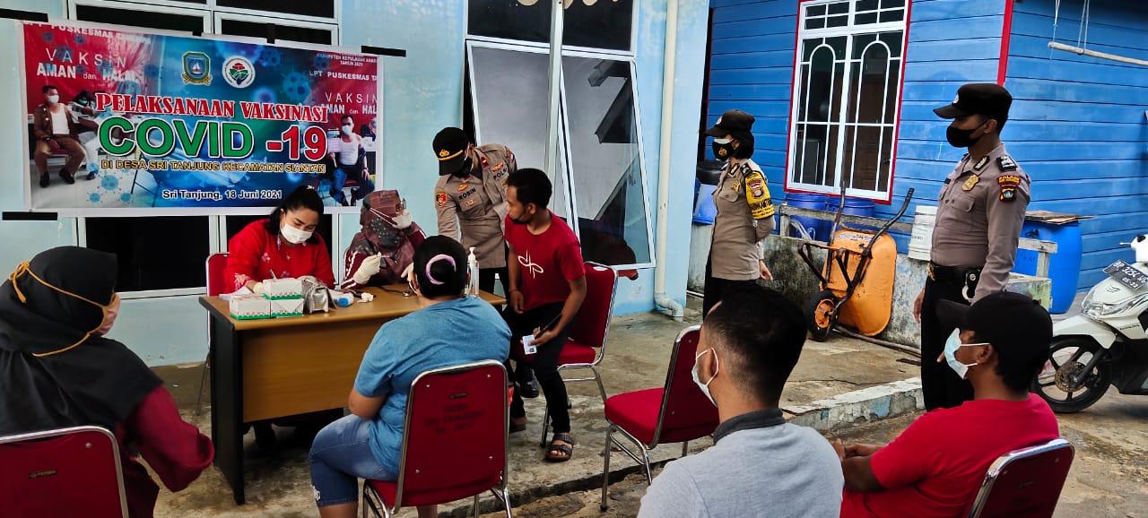 Vaksinasi dilaksanakan di depan kantor desa Sri Tanjung Kec. Siantan.