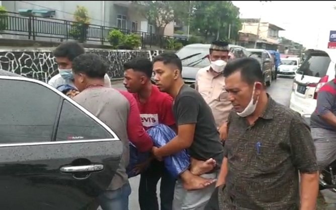Korban yang diketahui bernama Rizal, akhirnya diangkut menggunakan mobil dinas Gubernur Asnar menuju rumah sakit.