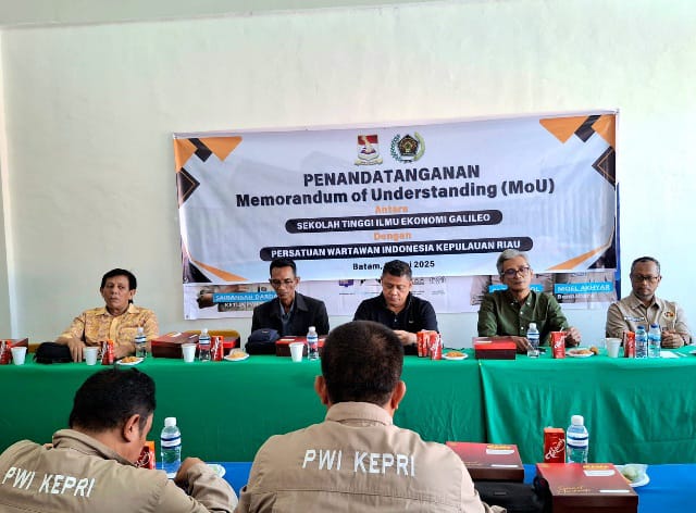 BatamNow.com – Sekolah Tinggi Ilmu Ekonomi (STIE) Galileo dan Persatuan Wartawan Indonesia (PWI) Provinsi Kepulauan Riau (Kepri) resmi menandatangani Nota Kesepahaman (MoU) untuk menjalin kerja sama dalam bidang pendidikan, penelitian, pelatihan, seminar, serta penerimaan mahasiswa baru.