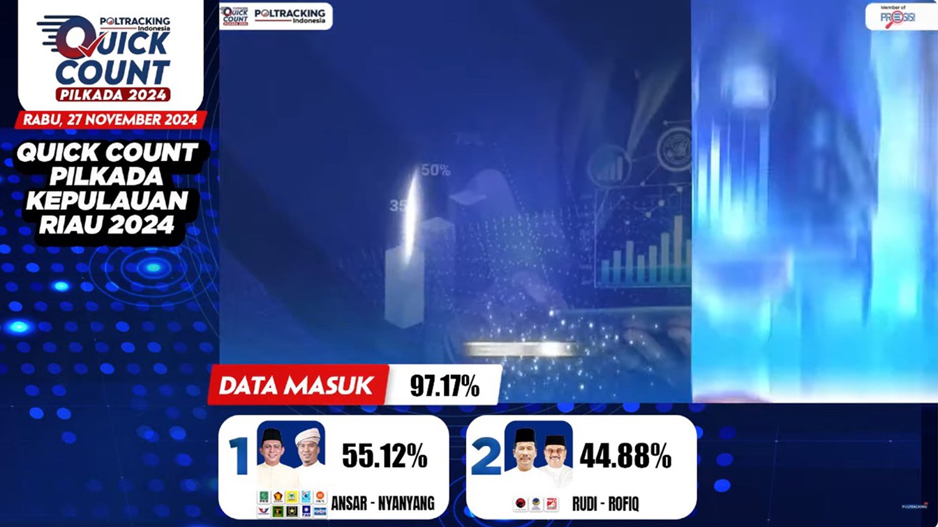 Berdasarkan hitung cepat (quick count) sementara oleh Poltracking Indonesia, Rabu (27/11), pasangan Ansar-Nyanyang memperoleh 55,12 persen suara. Sedangkan pasangan Muhammad Rudi – Aunur Rafiq dengan 44,88 persen suara. Persentase itu berdasarkan data masuk yang sudah mencapai 97,17 persen per pukul 18.06 WIB.