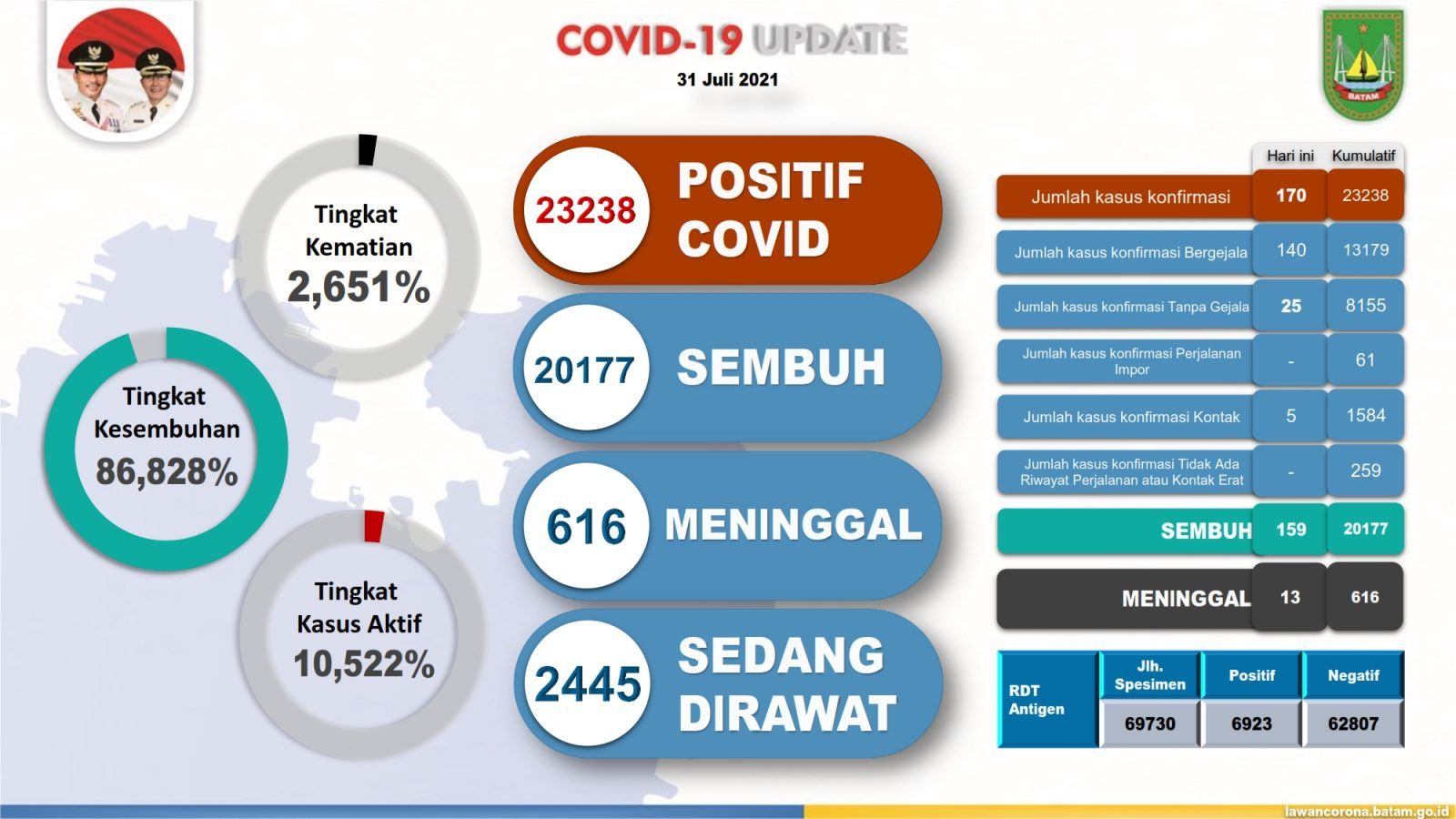 Update Covid-19 Kota Batam, Sabtu (31/07/2021). (F: lawancorona.batam.go.id)