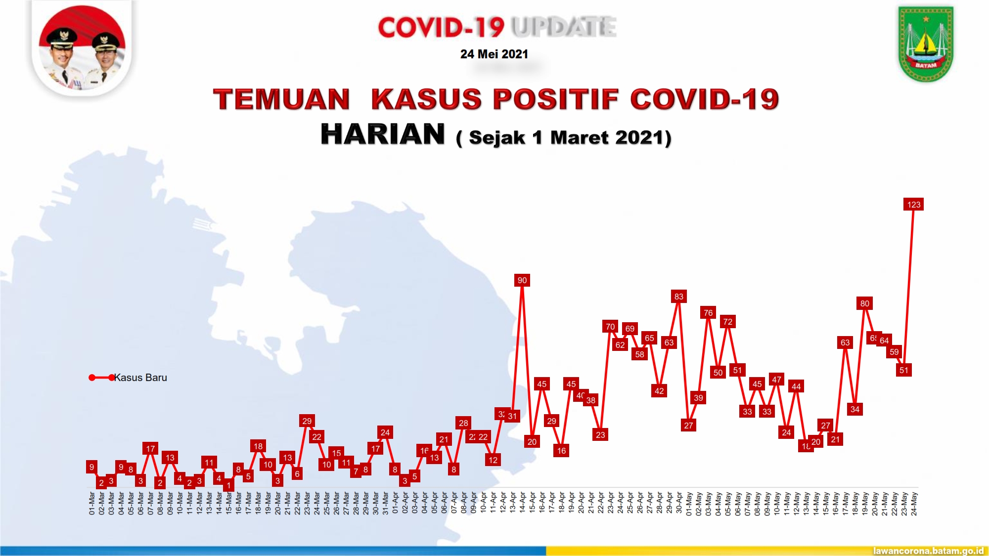 Hari Senin (24/05/2021) tercatat 123 kasus baru, harian.