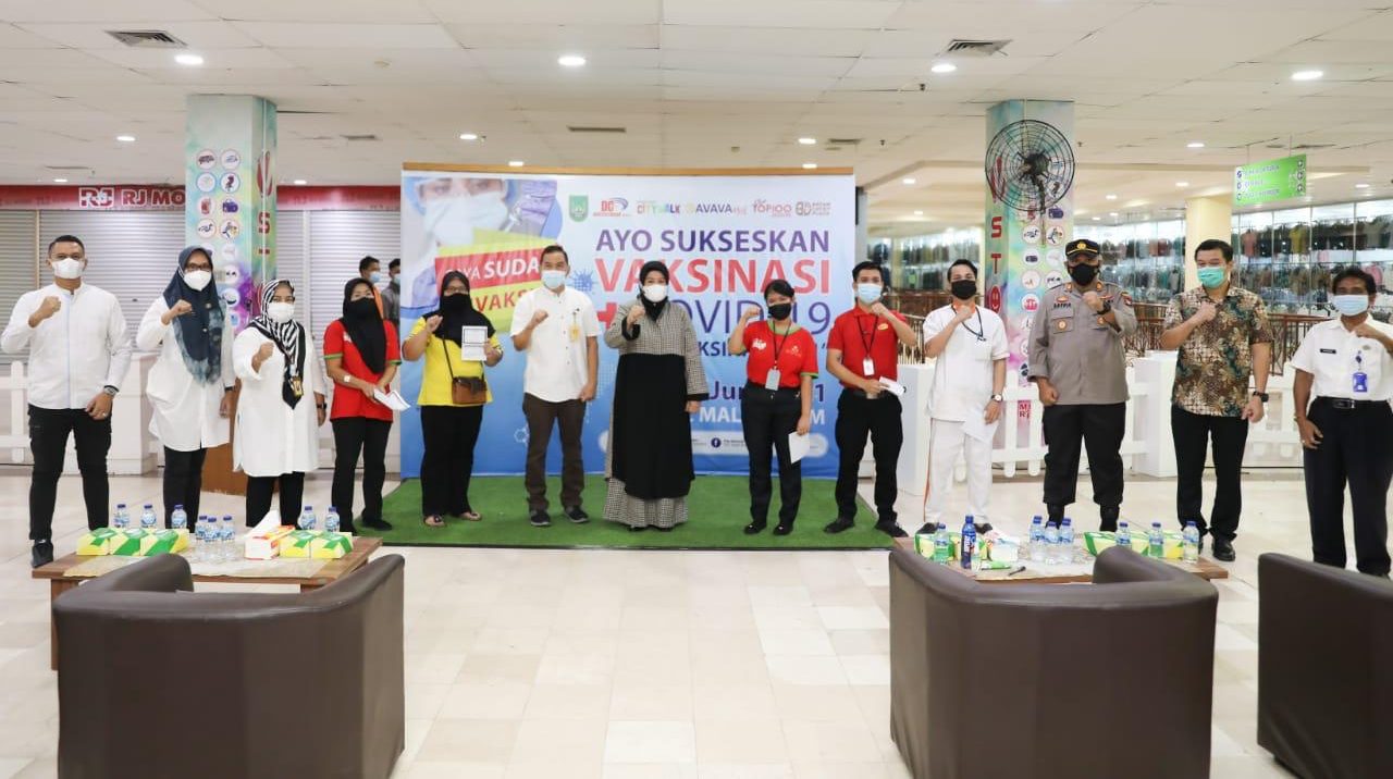 Di DC Mall, Wagub Marlin meninjau pelaksanaan vaksinasi untuk karyawan dan tenan. Kehadiran Wagub Marlin untuk memberi dukungan bahwa vaksinasi untuk masyarakat adalah aman dan halal.