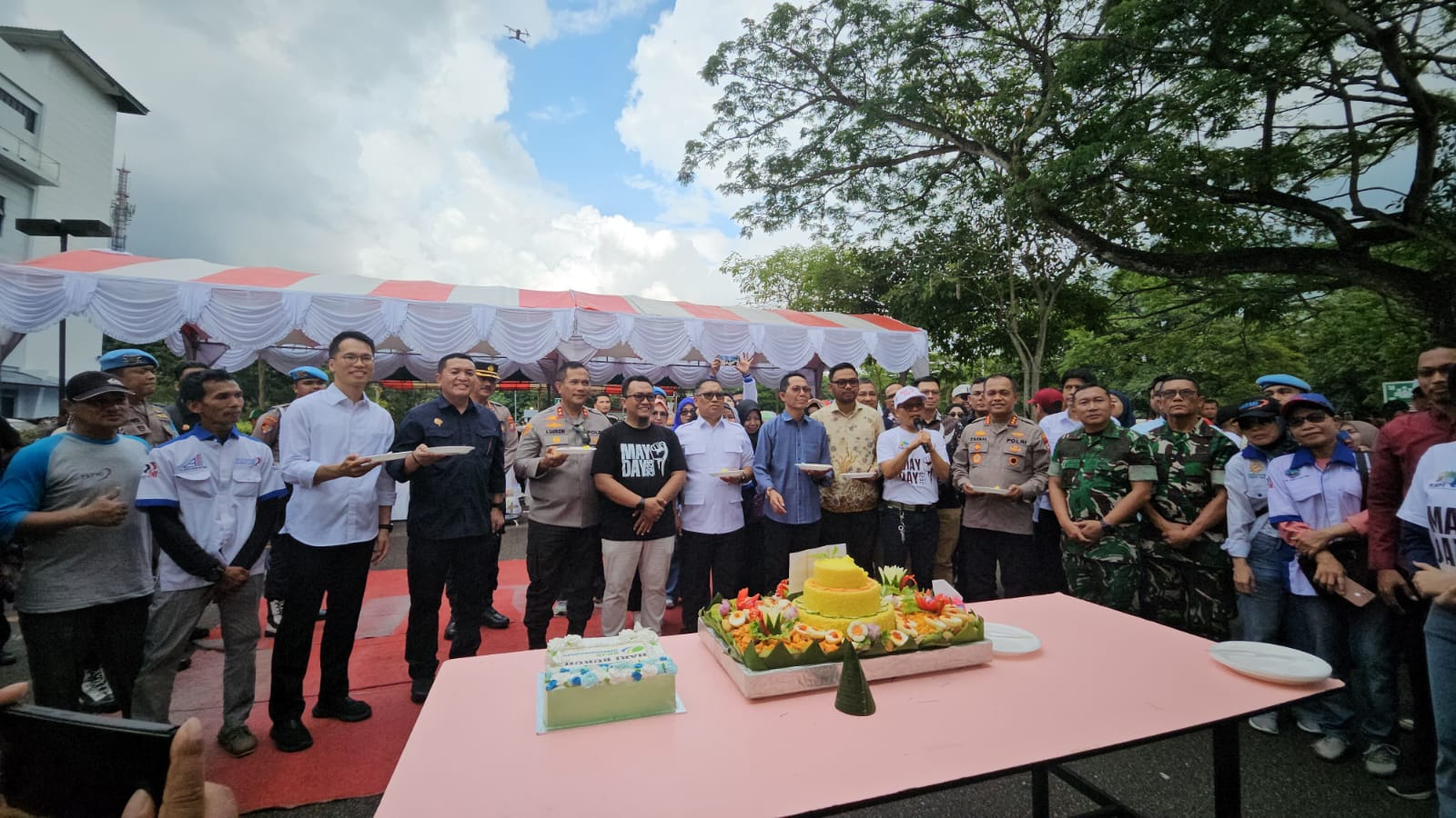 Hadir dalam acara ini sejumlah pejabat penting, antara lain Kapolda Kepri Irjen Pol Asep Syafrudin, Ketua DPRD Provinsi Kepri Iman Sutiawan, Perwakilan Danrem 036/Wira Pratama, Kabinda Kepri Brigjen TNI Bonar Panjaitan, Ketua Apindo Kepri Stanly Rocky, Walikota Batam Amsakar Ahmad, Kapolresta Barelang Kombes Pol Zaenal Arifin, serta seluruh gabungan pekerja yang ada di Kota Batam. (*)